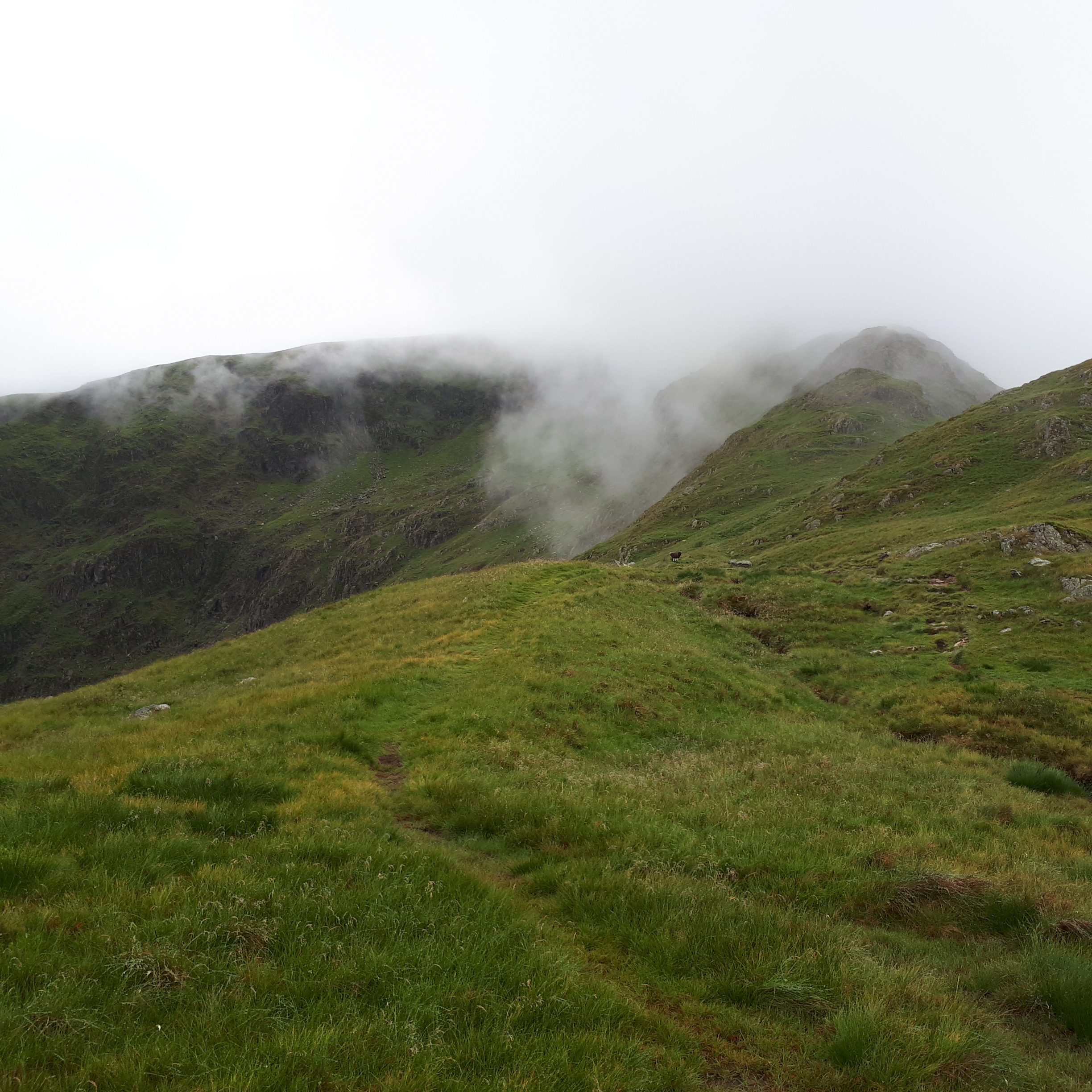 I continued over Harter Fell, down to Gatesgarth Pass and up to Branstree. The mist had cleared by now and navigation was easier. I stopped half way up Branstree to help a sheep who had its horns caught in a fence. We both struggled for a while but it was freed in the end and it ran off, no doubt to do exactly the same thing again tomorrow.