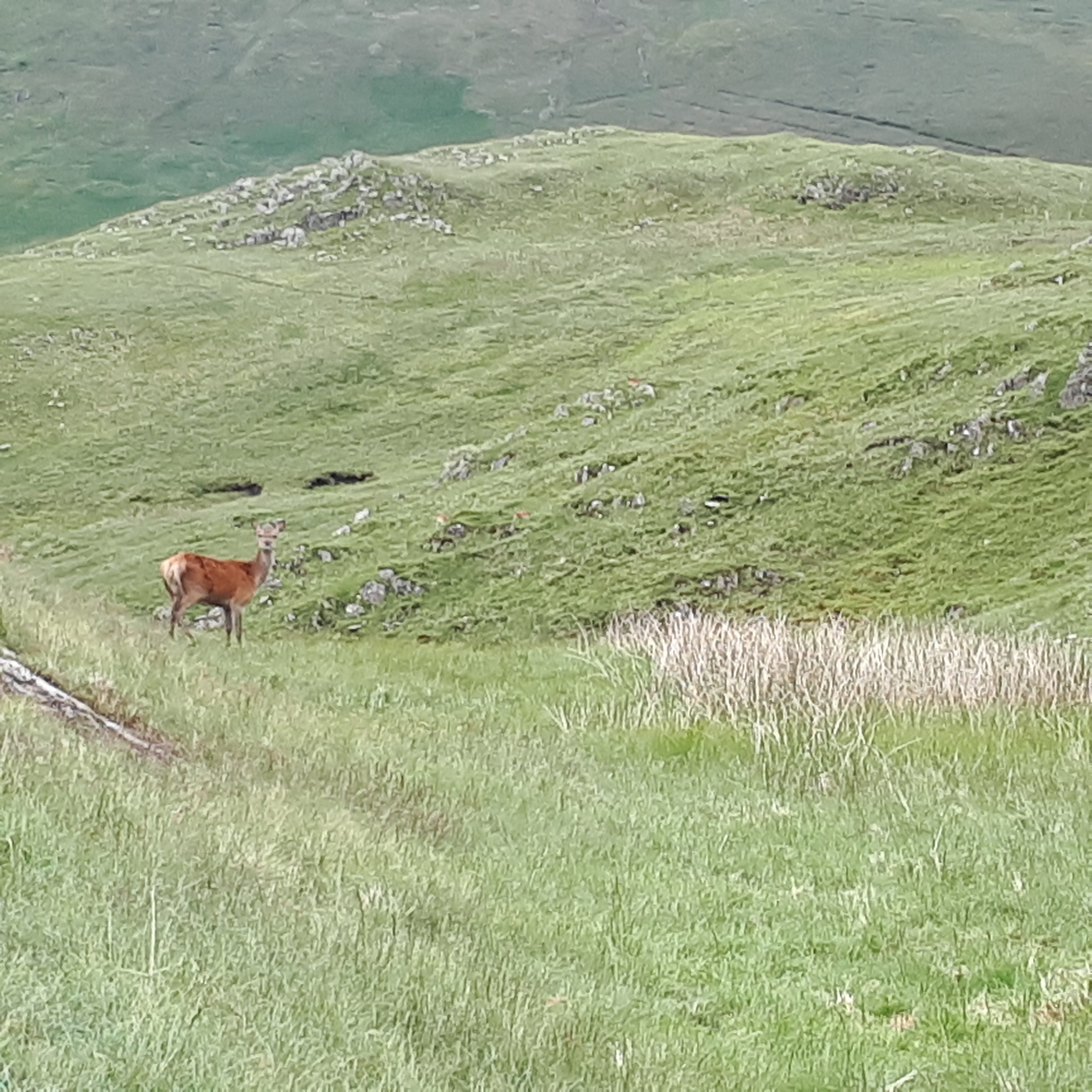 From Branstree I headed east across wild and pathless country down to Mosedale. It was here last October that I saw the first wild deer I had seen in the Lakes for years and I was curious to see if they were still there. I rounded a corner and there were the deer, less than 20 metres away, eating grass and unaware of my presence. I watched them for about 10 minutes before one of them turned and saw me and they all ran.