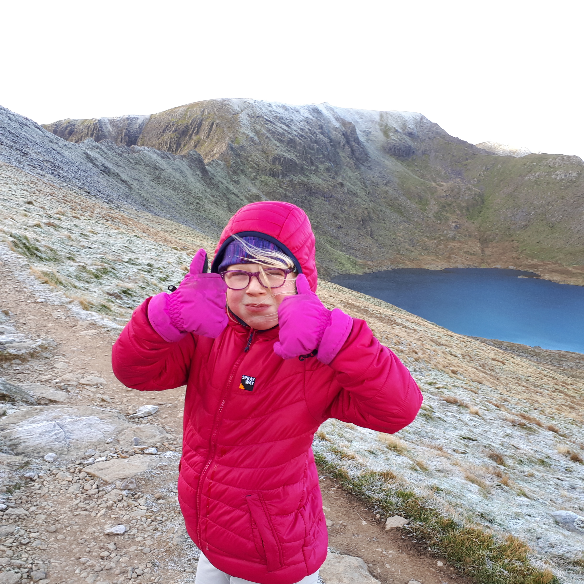 In October 2018 we did Cam Crag Ridge in Borrowdale and also Striding Edge. Cam Crag is a lovely, clean, grade 2 scramble which Hannah enjoyed. We roped up but I let Hannah go first on the easier parts, placing slings round rocks for me to take off as I passed. We did Striding Edge on a bitterly cold day with frost on the ground and ice in the puddles, although the rock was dry. We were the only women on the ridge and we overtook an all male adult group with a sense of pride.