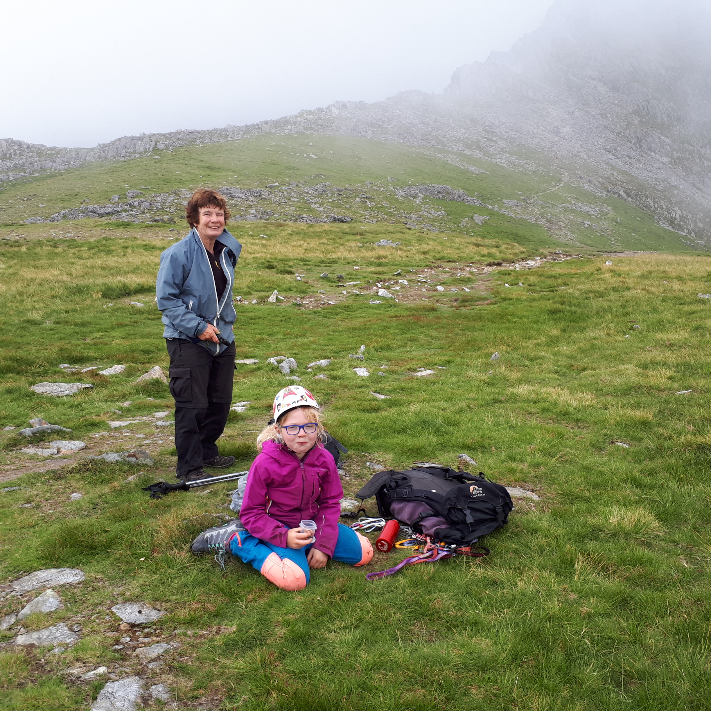 In April 2019 when Hannah was 8 we had our first trip to North Wales, staying at my climbing club hut at Cwm Dyli and we climbed the north ridge of Tryfan. That was followed the same summer by Snowdon via Y Gribin and then Cneifion Arete the following day. Cneifion Arete is a grade 3 scramble which is given the grade of Difficult in climbing guidebooks. The difficulty is confined to the first pitch and above that it becomes an easier scramble up an alpine ridge. It is one of the greatest scrambles in Wales. I wanted another adult with me and as we were on a climbing club meet, one of the older ladies, Royanne, agreed to come with us. I had the pleasure of leading an 8 year old and a 70 year old up the Arete with the mist swirling around my feet. Hannah took it all in her stride and was more impressed by the fact that Royanne’s daughter was a real life eco-warrior who held the record for the longest time spent underground in protest.