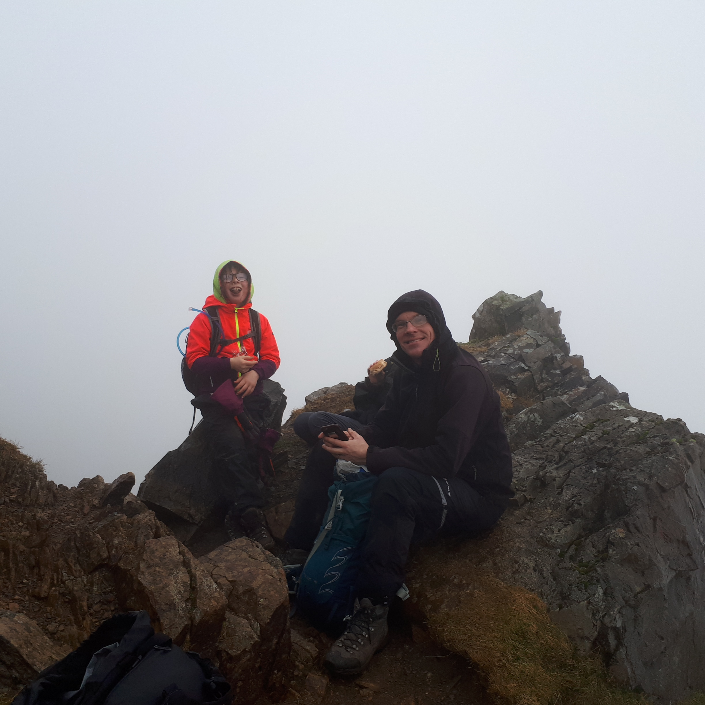 The next trip was Pinnacle Ridge on St Sunday Crag in August 2017. This was harder and I asked another adult, Mark Eddy, to come along so we could rope up on the hard step. A crucial part of scrambling with children is that you must always be in your comfort zone. If you’re in your “stretched” zone then your child will be in their “terrified” zone and that’s not going to end well. If it all goes wrong you can’t expect a child to get help – although Hannah and I do have a chat these days at the start of every walk about what she would do if I suddenly collapsed or if she got separated from me, and she does carry her own survival bag and whistle.
