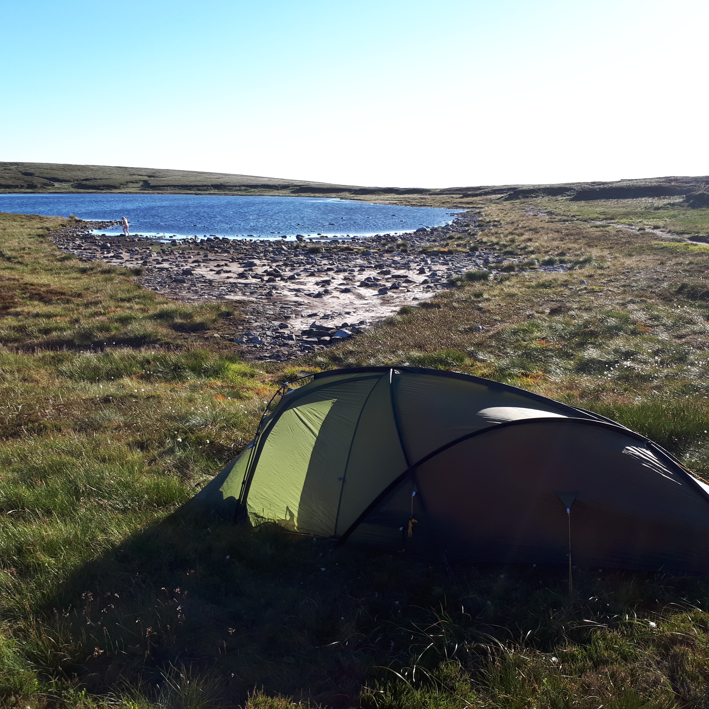 I didn’t feel inclined to wild camp again for two years and then I chose a breezy day! We camped up at Great Rundale Tarn in the North Pennines after walking up from Dufton. This worked well. Hannah had a swim in the tarn and there was not a midge in sight. Next day we followed Maize Back down to High Cup Nick and followed the Pennine Way back to Dufton.