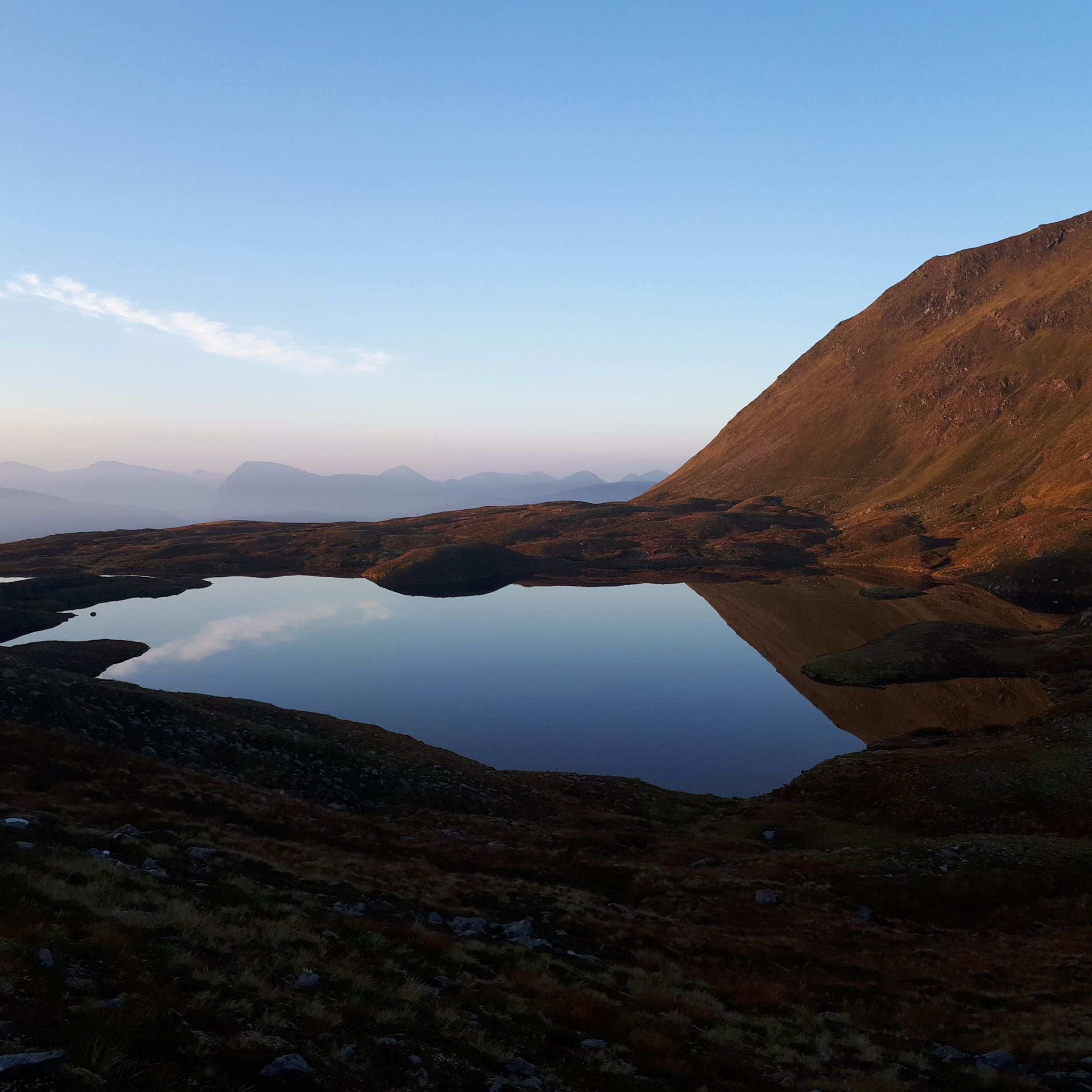 Friday night saw me in Kinlochleven with just enough time to walk up to Lochain Eilde Mor before nightfall. I put up my tent in the light of my head torch and watched the stars come out above the dark shadow of Sgurr Eilde Mor, no wind, no rain, just the sound of the stream to send me to sleep.