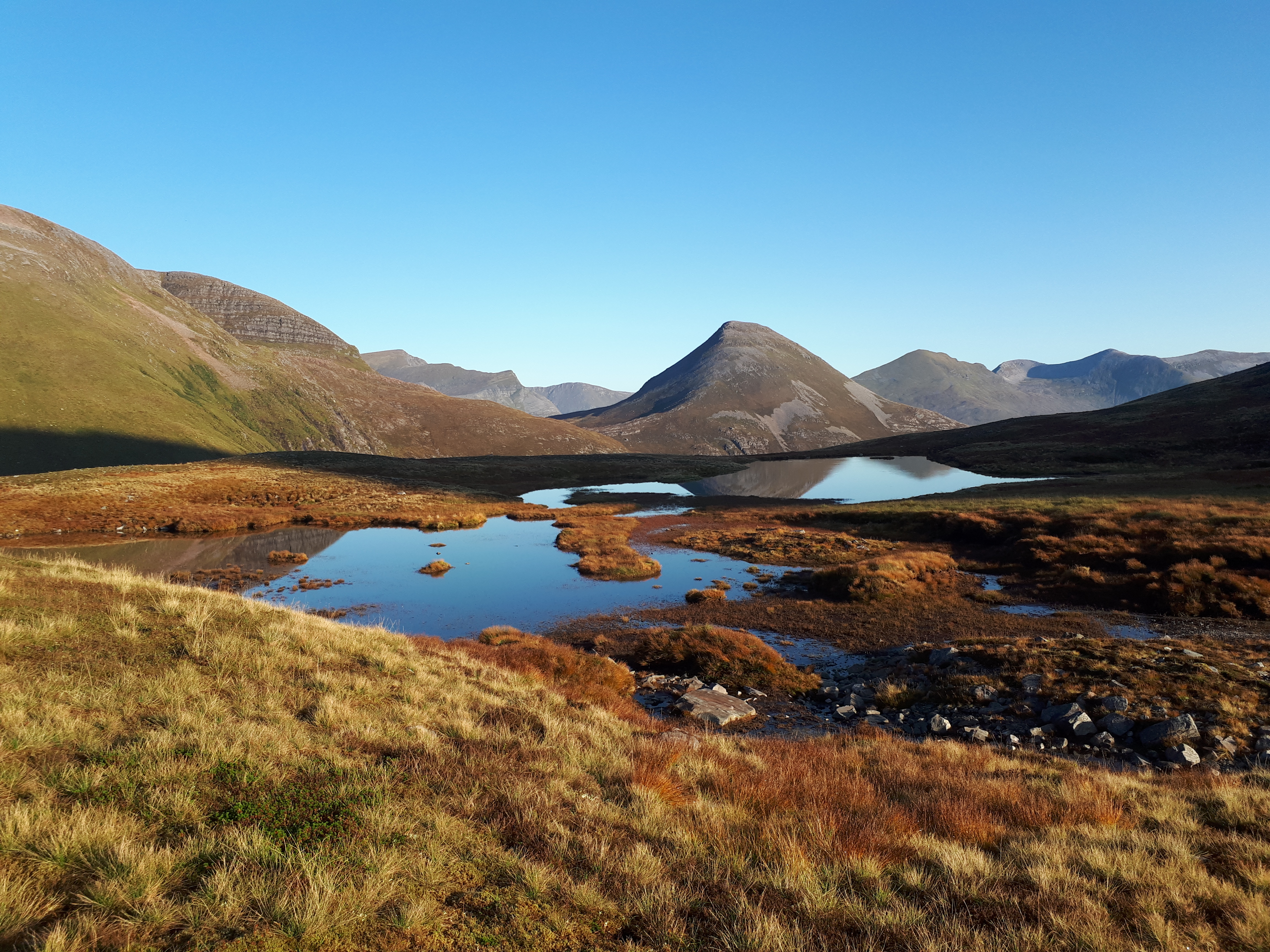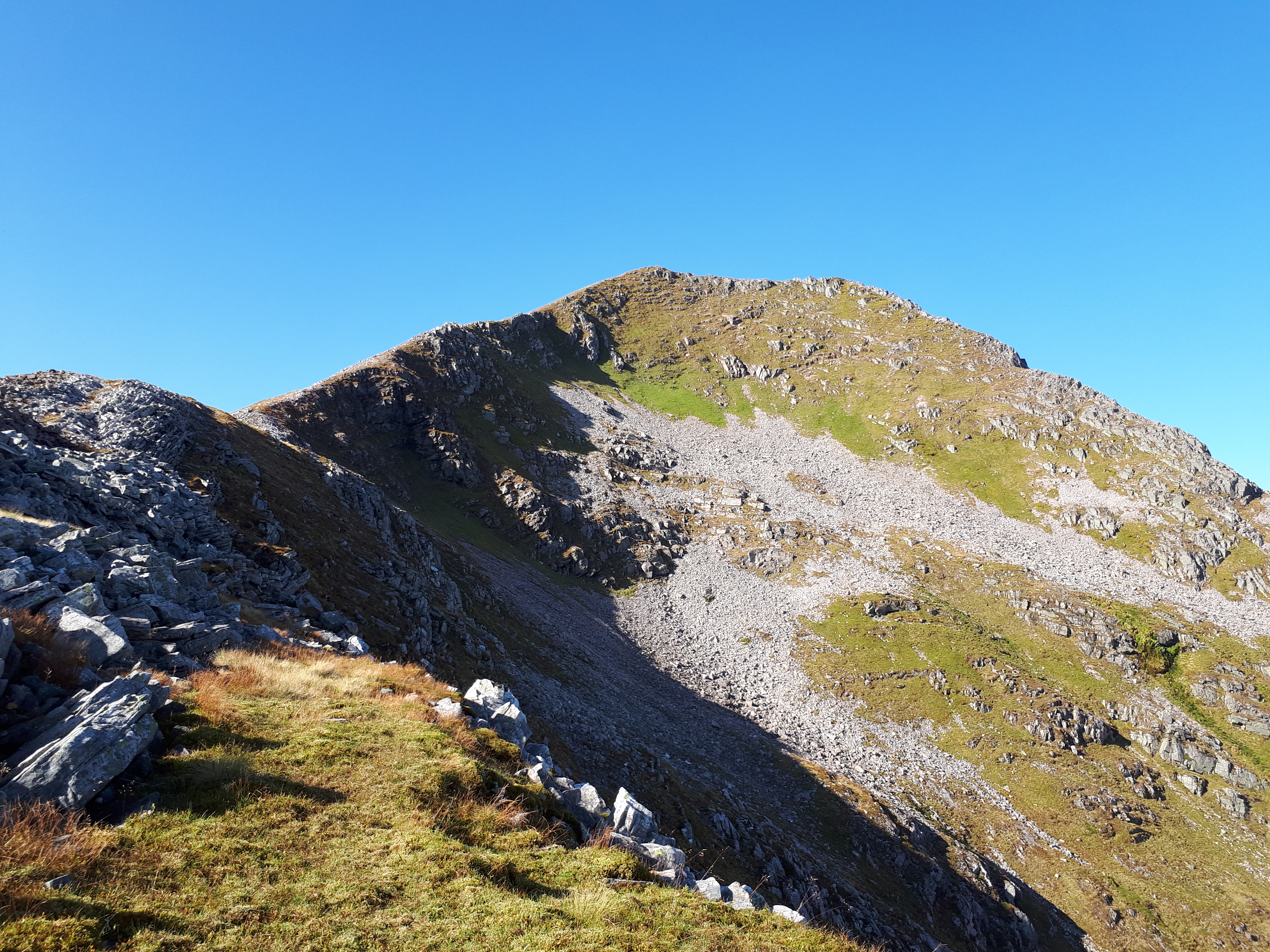 I left my rucksack at the col before An Gearanach and scrambled along the rocky ridge to the Munro. This was the only bit of real scrambling I did in the 2 days and it wasn’t hard. Without my heavy rucksack I felt like I was floating. Then back to the col and weighed down once more I climbed up to Stob Coire A Chearn, my 6th Munro.