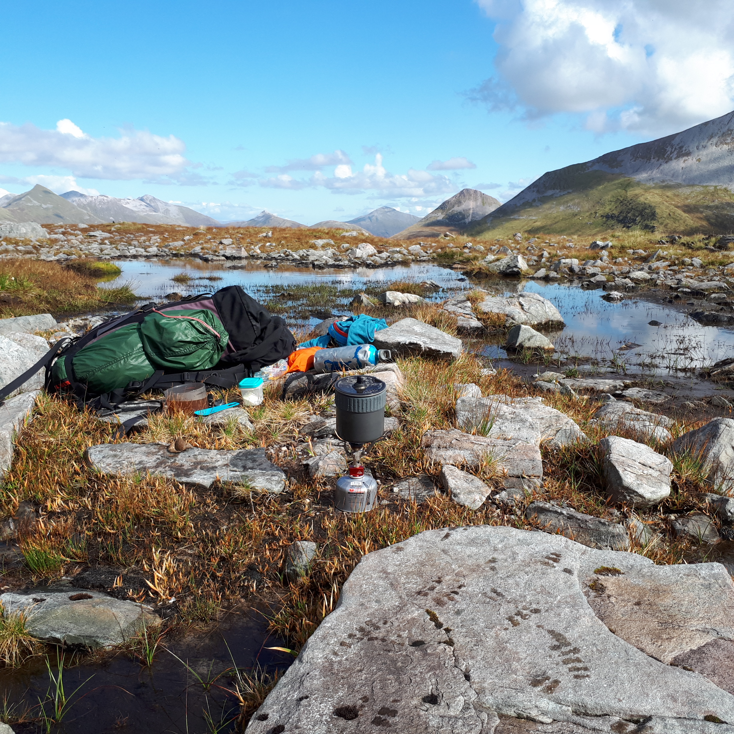 I wouldn’t be able to do that as I can’t carry a pack over hills – I can just about make it to bothies with a camping pack but that’s all! I tend to hillwalk very light indeed and usually just use a bumbag (albeit one with 2 drinks bottle holders for my flasks).