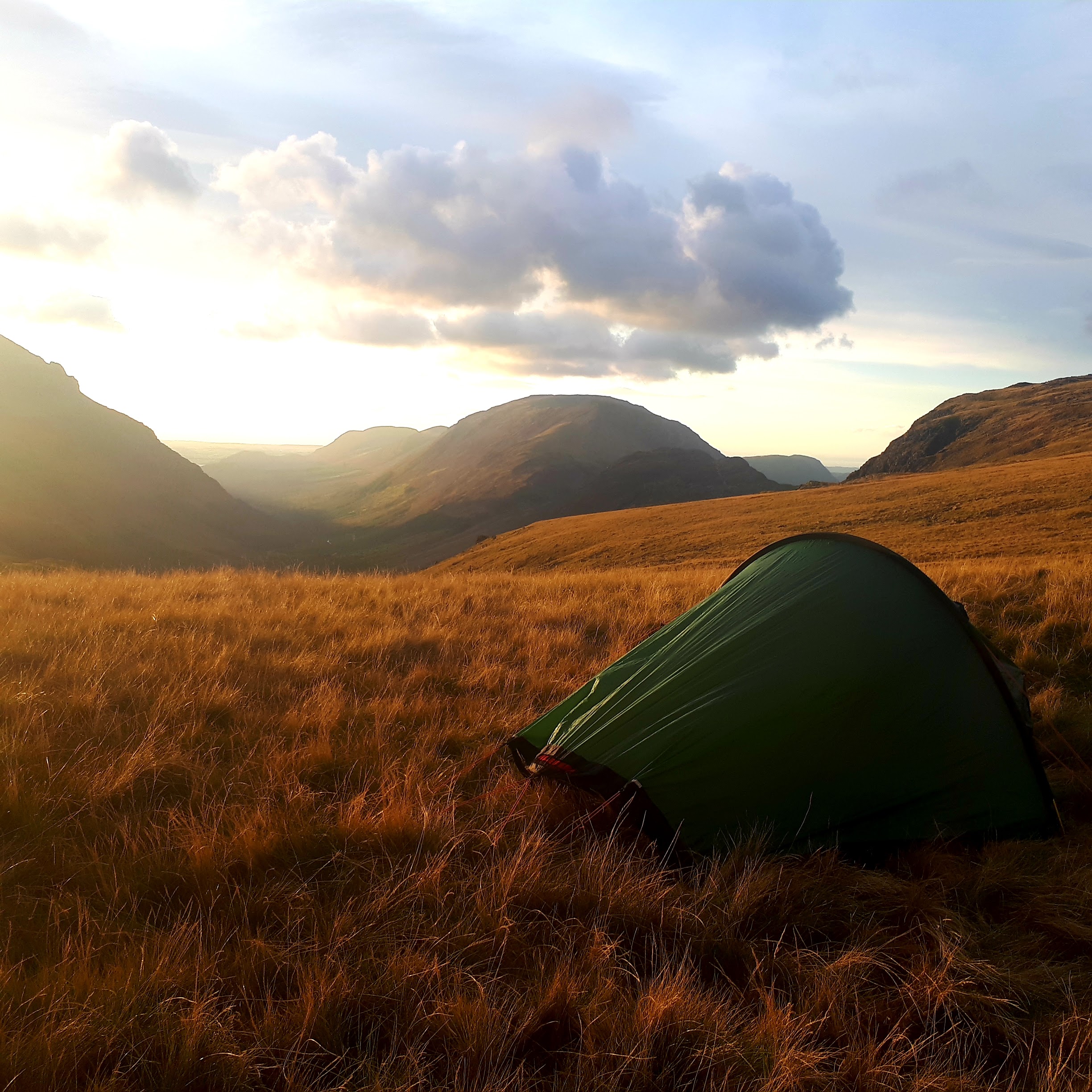 I was in two minds about whether to camp and was half tempted to walk down and sleep in the car. It was forecast to rain early the next morning, I wasn’t keen on a wet walk out with a wet tent and I still had 2 hours before dark. But I had carried my camping gear round with me all day and it was a stunning place to camp, so I set up camp in my usual spot. It was the right decision, I wouldn’t have had much sleep in the carpark if the empty Durex wrappers found next to my car the following morning were anything to go by 🤣.