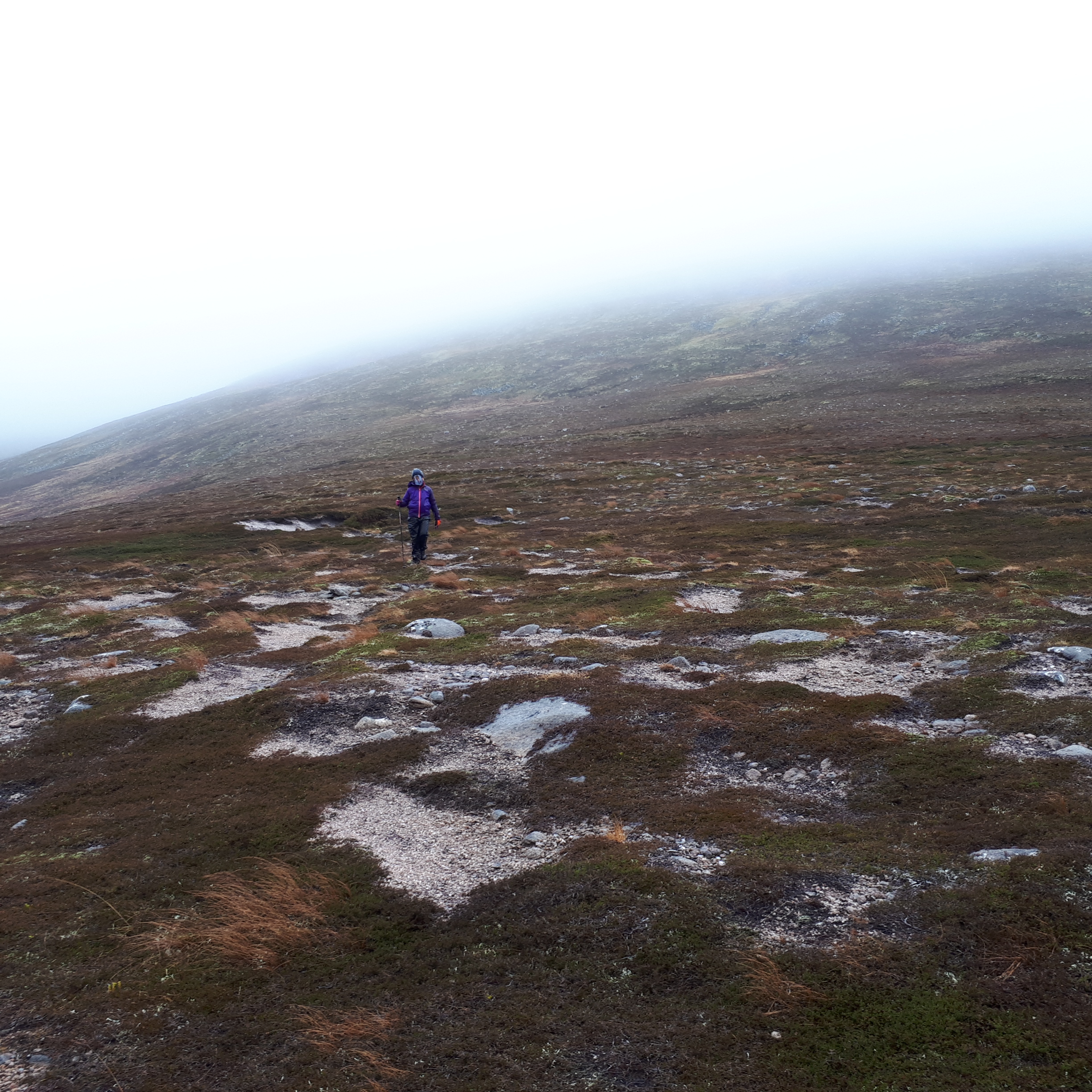 We started from Glen Feshie, about 3km south of Feshie Bridge and were walking by 8am. Surprisingly enough someone had beaten us to it and a couple were just starting to walk as we arrived. Maybe it wasn’t that surprising given the weather forecast. The plan was to ascend Sgor Gaoith via a less frequented route over Geal Charn and Meall Bhuidhe and then return down the main path from the summit.