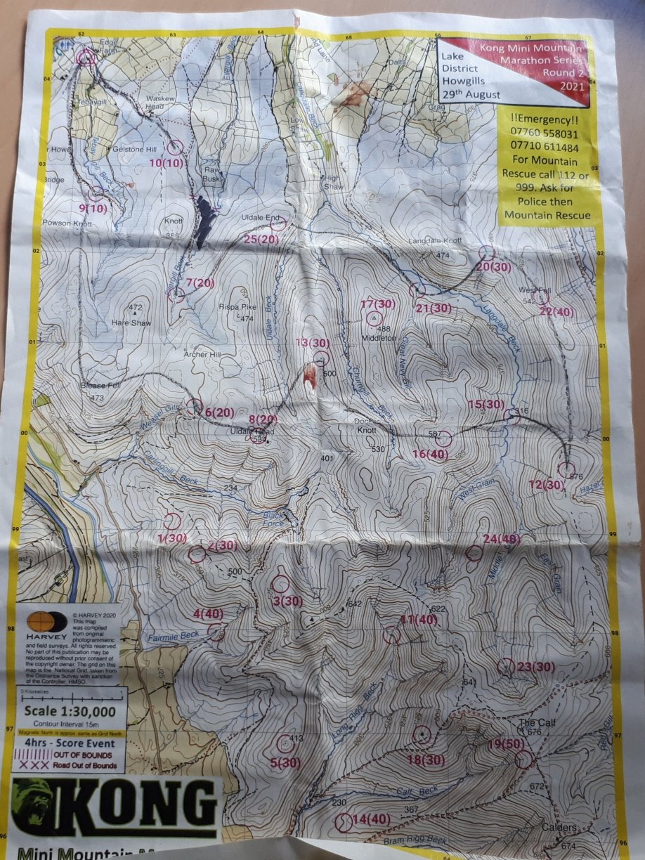 The Kong Mini Mountain Marathons are essentially mountain orienteering events. You are handed a map showing checkpoints with different values and you have to visit as many as possible in 4 hours. You choose your own route and there is not time for even the fastest to visit all the checkpoints. The further away the checkpoint, the higher the value, and points are deducted if you come back in over 4 hours. It’s a great test of route planning, fitness and navigation and I love them.